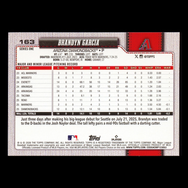 Brandyn Garcia RC 2026 Topps Rookie Diamondbacks