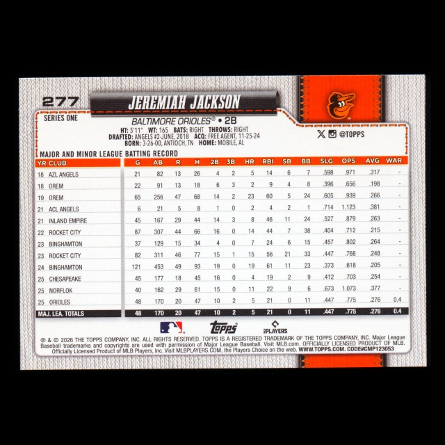 Jeremiah Jackson RC 2026 Topps Rookie Orioles