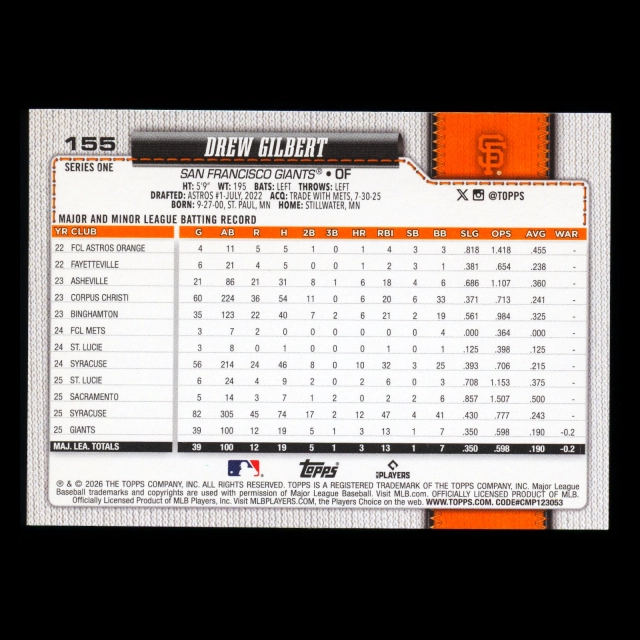Drew Gilbert RC 2026 Topps Rookie Giants