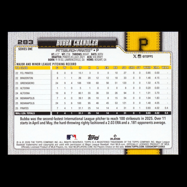 Bubba Chandler RC 2026 Topps Rookie Pirates