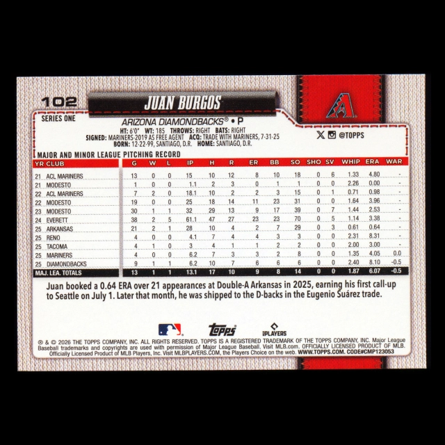 Juan Burgos RC 2026 Topps Rookie Diamondbacks