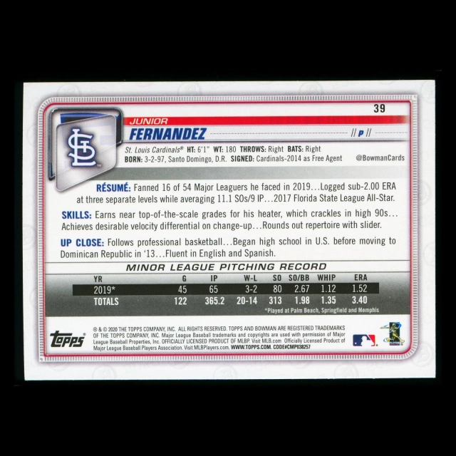 Junior Fernandez RC 2020 Bowman Rookie Cardinals