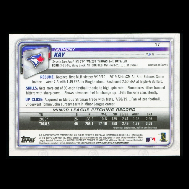 Anthony Kay RC 2020 Bowman Rookie Blue Jays