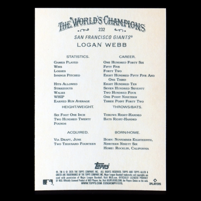 Logan Webb 2025 Allen & Ginter Giants