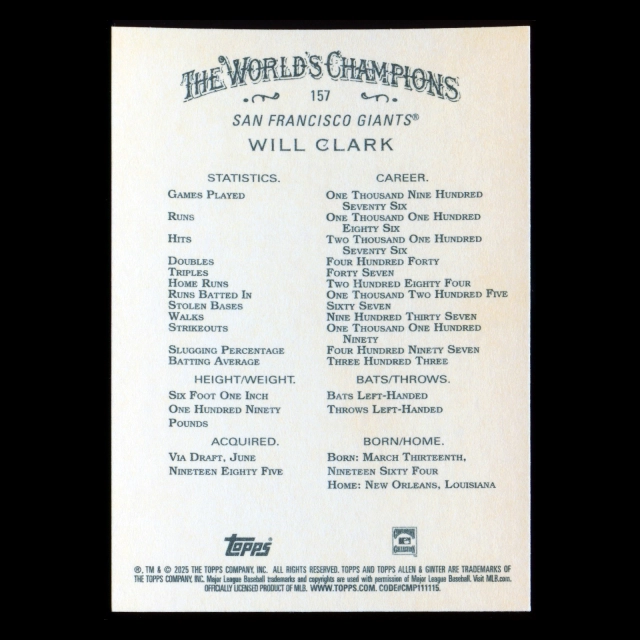 Will Clark 2025 Allen & Ginter Giants