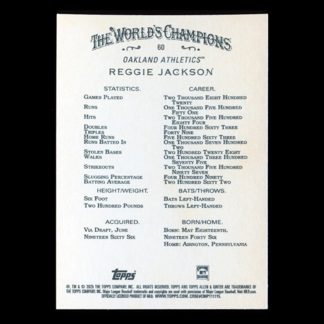 Reggie Jackson 2025 Allen & Ginter Athletics