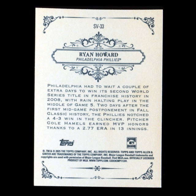 Ryan Howard 2025 Topps Allen and Ginter Sweet Victory Phillies