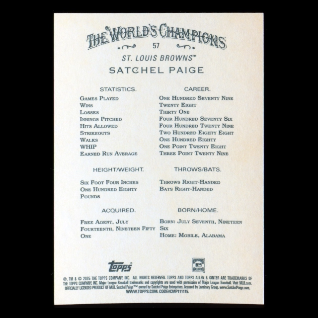 Satchel Paige 2025 Allen & Ginter Browns