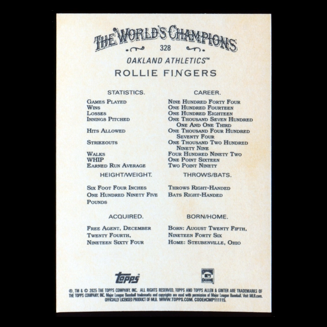 Rollie Fingers 2025 Allen & Ginter Athletics