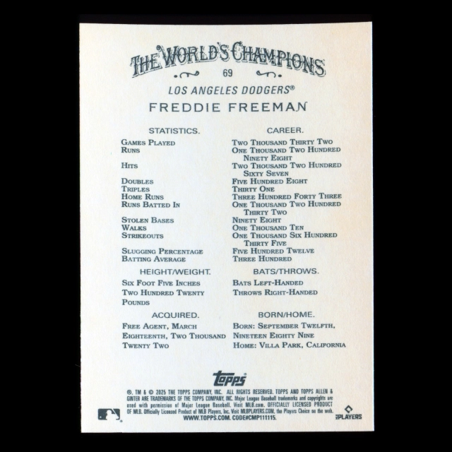Freddie Freeman 2025 Allen & Ginter Dodgers