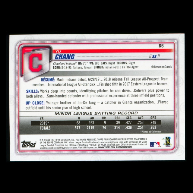 Yu Chang RC 2020 Bowman Rookie Indians