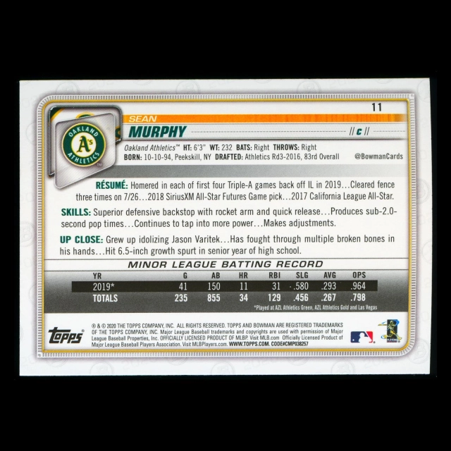 Sean Murphy RC 2020 Bowman Rookie Athletics