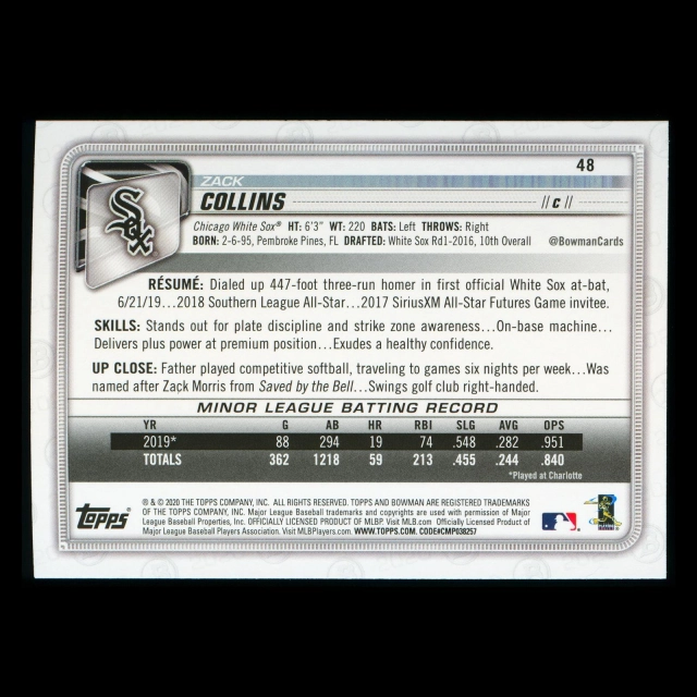 Zack Collins RC 2020 Bowman Rookie White Sox