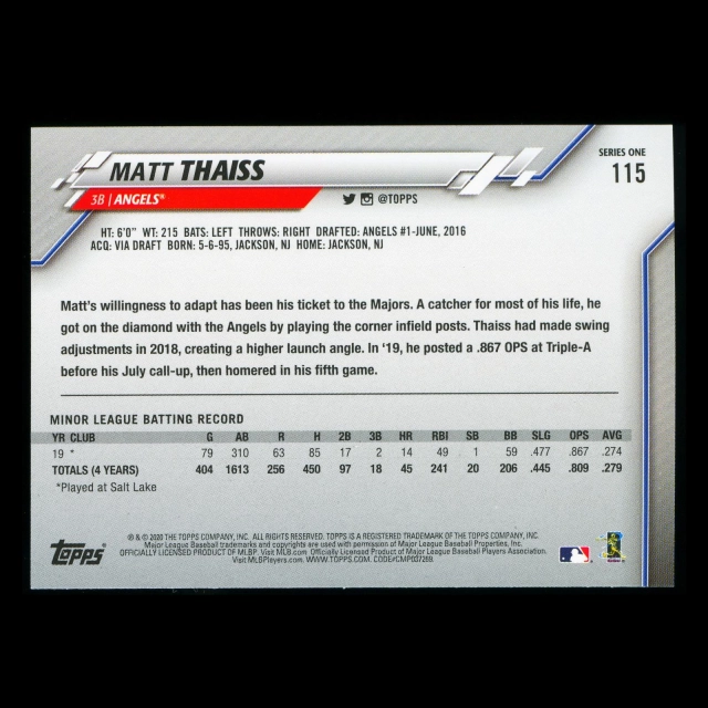 Matt Thaiss RC 2020 Topps Rookie Angels