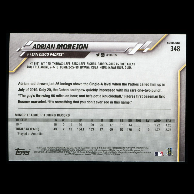 Adrian Morejon RC 2020 Topps Rookie Padres