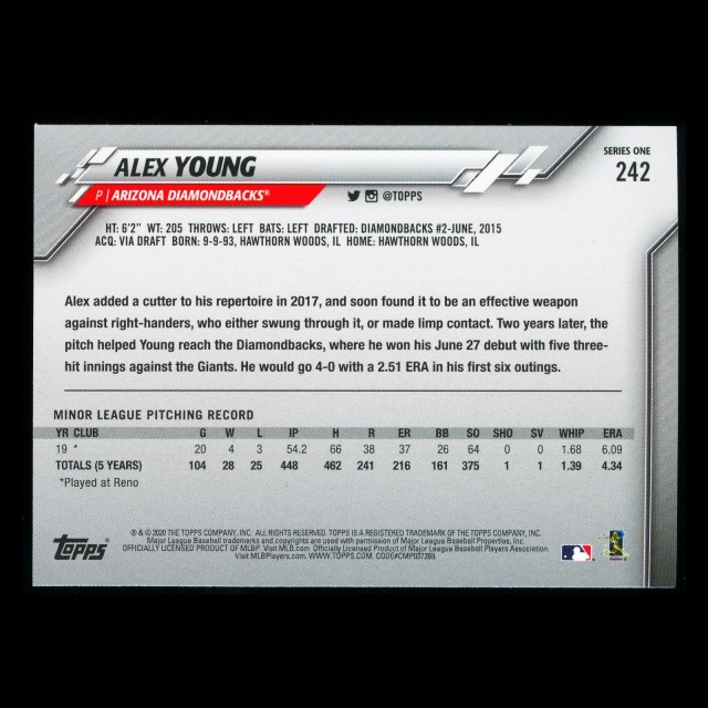Alex Young RC 2020 Topps Rookie Diamondbacks