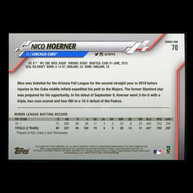 Nico Hoerner RC 2020 Topps Rookie Cubs