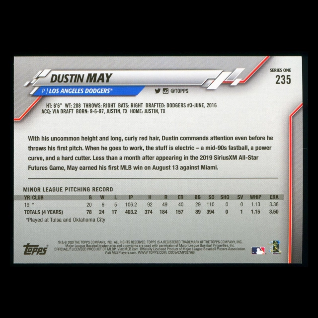 Dustin May RC 2020 Topps Rookie Dodgers