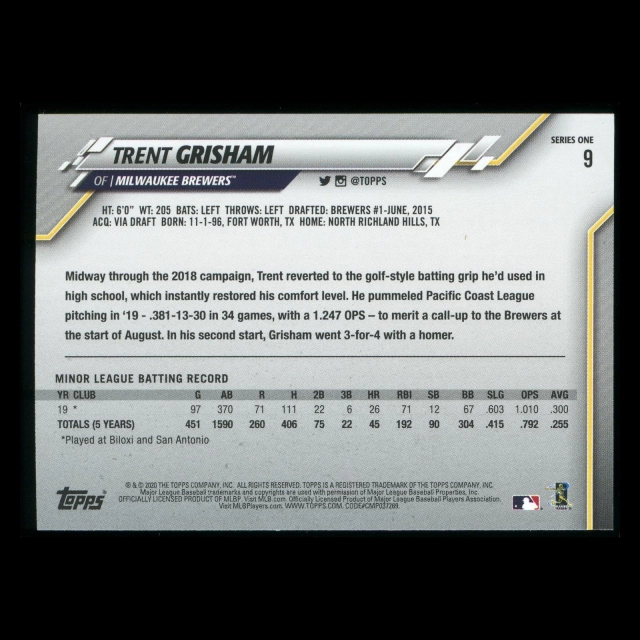 Trent Grisham RC 2020 Topps Rookie Brewers
