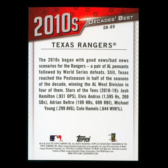 Texas Rangers 2020 Topps Decades' Best Teams 2010s
