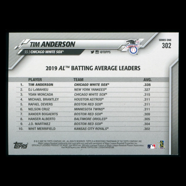 Tim Anderson 2020 Topps League Leaders White Sox