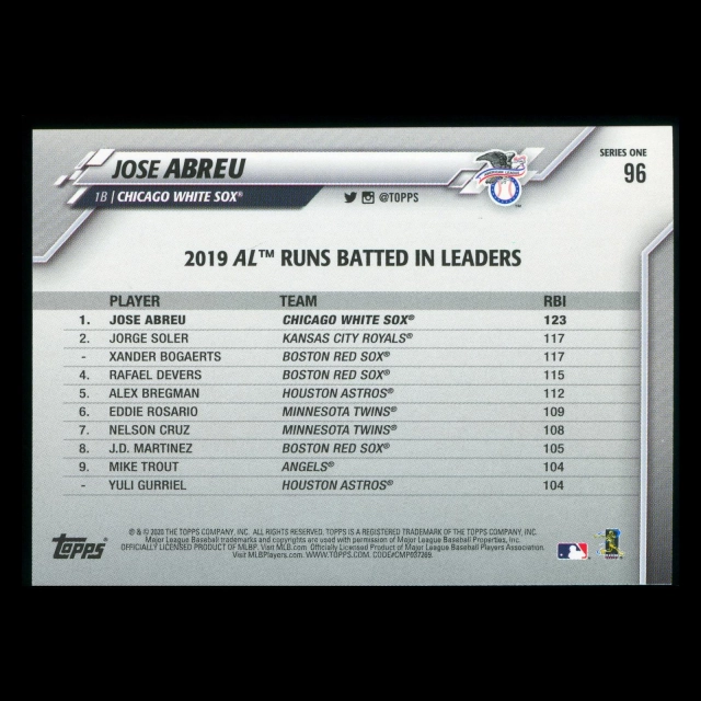 Jose Abreu 2020 Topps League Leaders White Sox