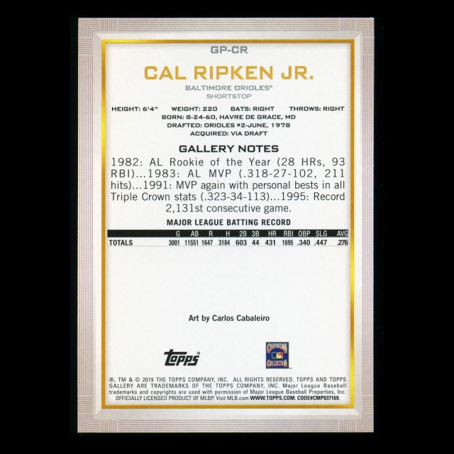 Cal Ripken Jr. 2019 Topps Gallery National Baseball Card Day Orioles