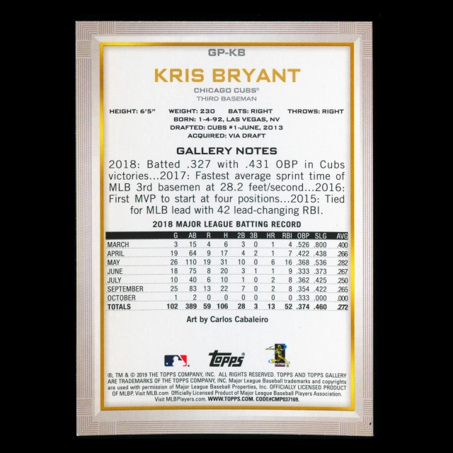 Kris Bryant 2019 Topps Gallery National Baseball Card Day Cubs