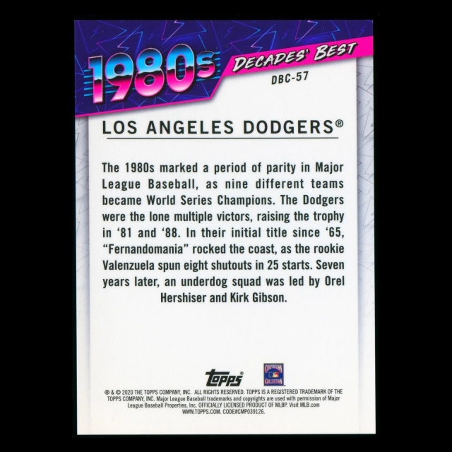 Los Angeles Dodgers 2020 Topps Decades' Best Chrome Batters 1980s