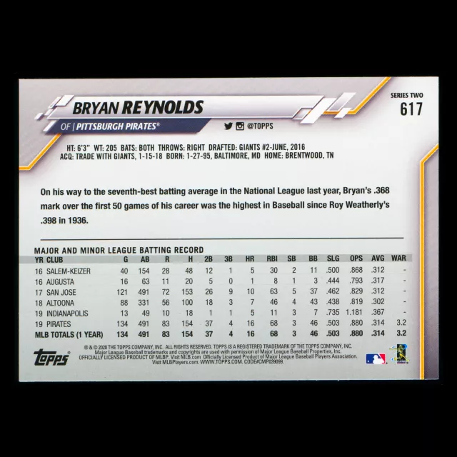 Bryan Reynolds 2020 Topps All-Star Rookie Pirates