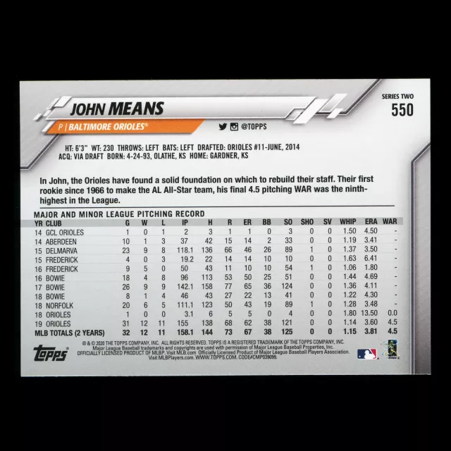 John Means 2020 Topps All-Star Rookie Orioles