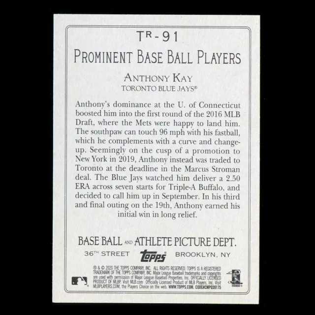 Anthony Kay RC 2020 Topps Turkey Red Rookie Blue Jays