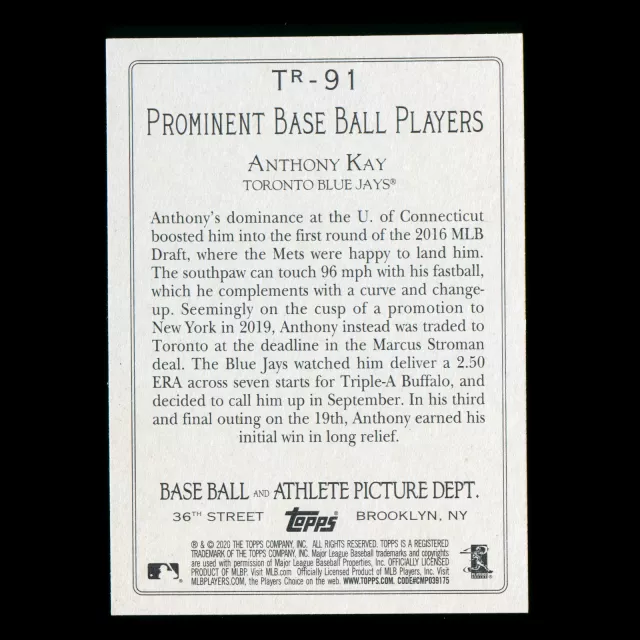 Anthony Kay RC 2020 Topps Turkey Red Rookie Blue Jays