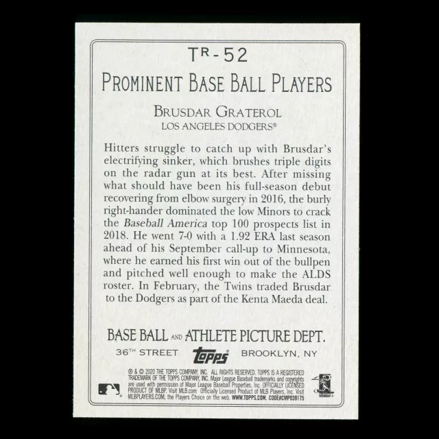 Brusdar Graterol RC 2020 Topps Turkey Red Rookie Dodgers