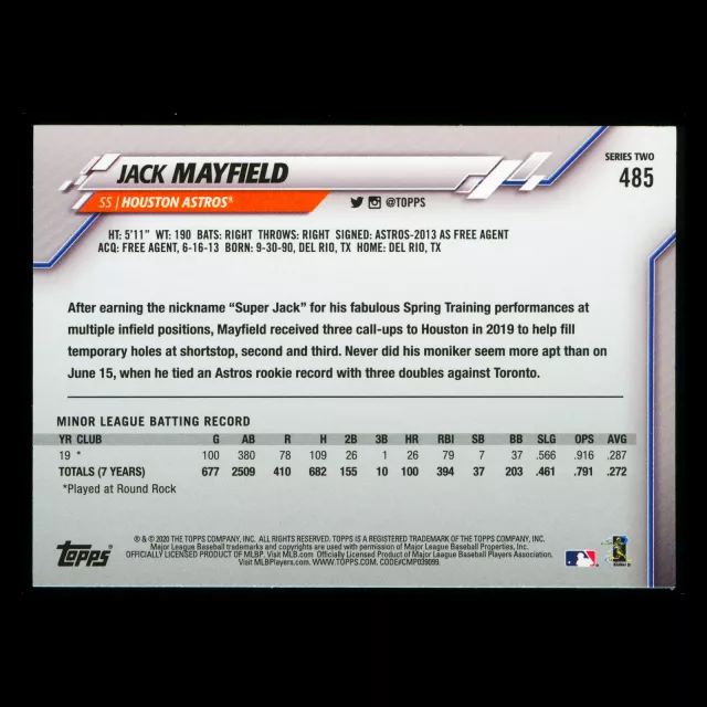 Jack Mayfield RC 2020 Topps Rookie Astros