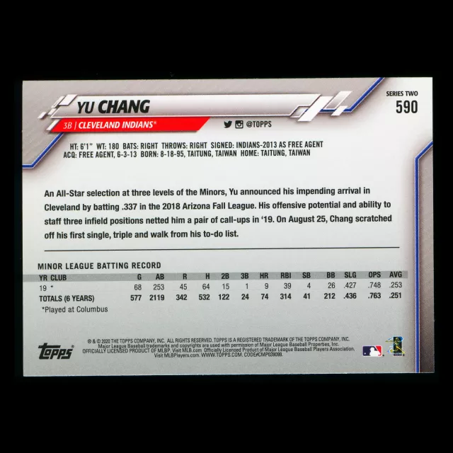 Yu Chang RC 2020 Topps Rookie Indians