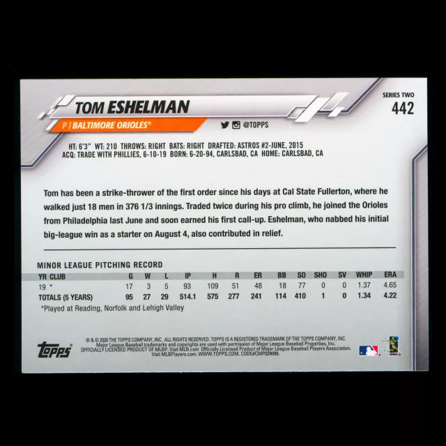 Tom Eshelman RC 2020 Topps Rookie Orioles
