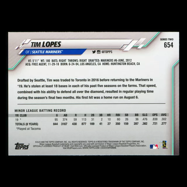 Tim Lopes RC 2020 Topps Rookie Mariners