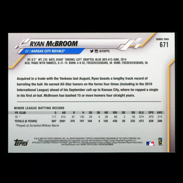 Ryan McBroom RC 2020 Topps Rookie Royals