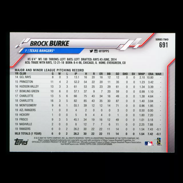 Brock Burke RC 2020 Topps Rookie Inaugural Season Rangers
