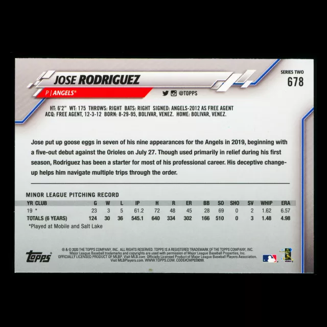Jose Rodriguez RC 2020 Topps Rookie Angels