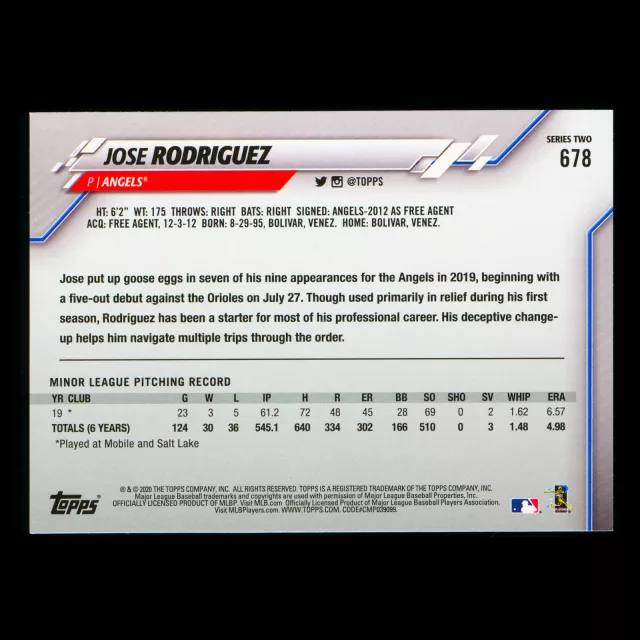 Jose Rodriguez RC 2020 Topps Rookie Angels