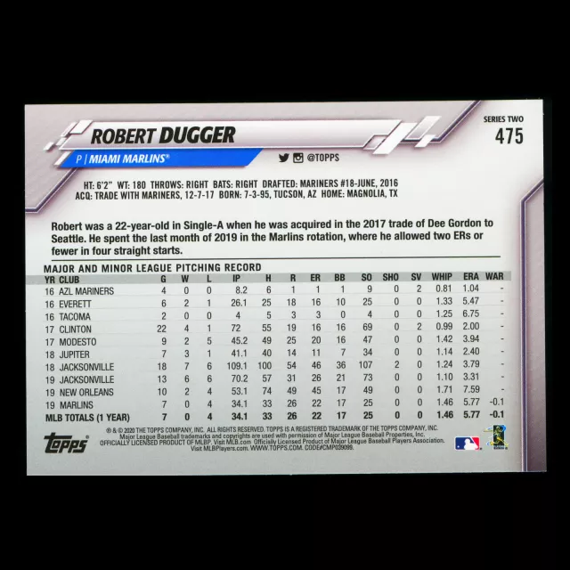 Robert Dugger RC 2020 Topps Rookie Marlins