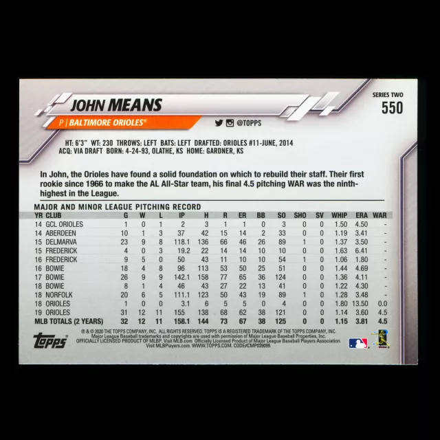 John Means 2020 Topps All-Star Rookie Orioles