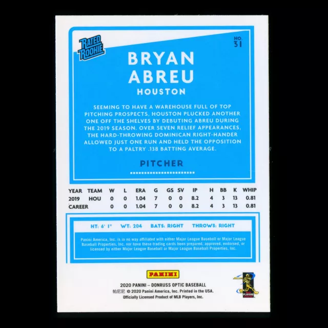 Bryan Abreu RR 2020 Optic Rated Rookie Astros
