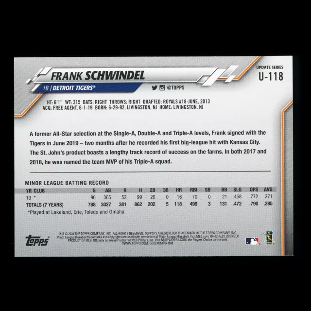 Frank Schwindel RC 2020 Topps Rookie Tigers