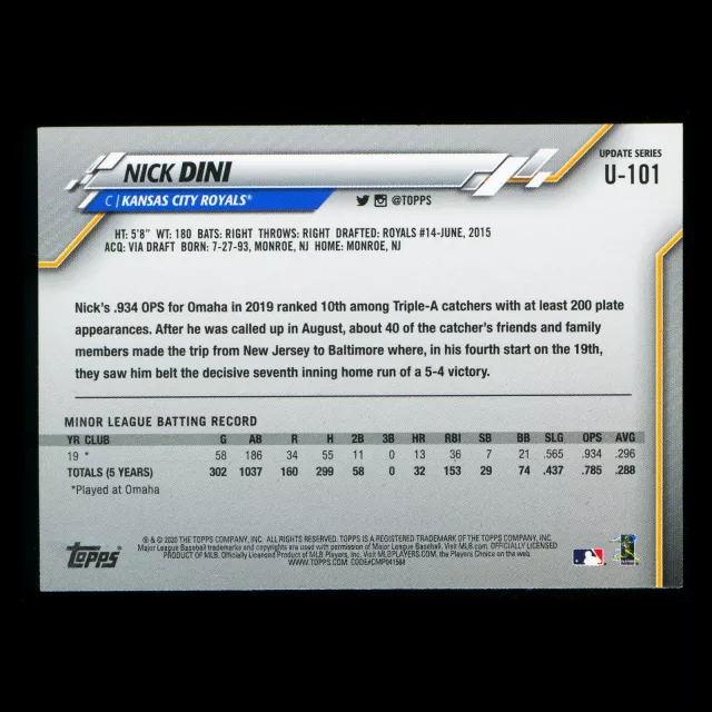 Nick Dini RC 2020 Topps Rookie Royals