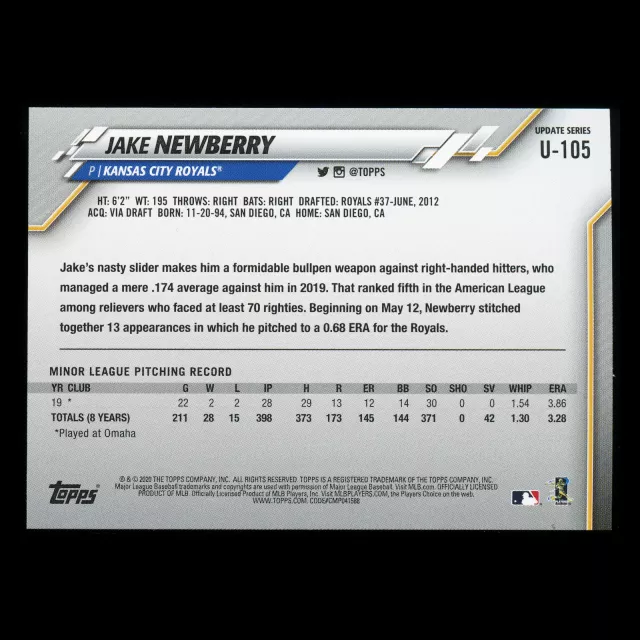 Jake Newberry RC 2020 Topps Rookie Royals