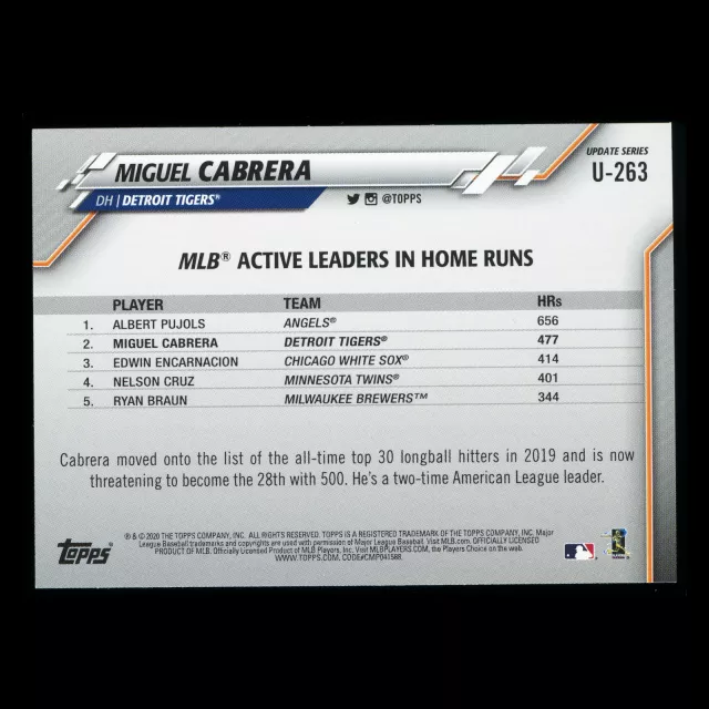 Miguel Cabrera 2020 Topps Active Leaders Tigers