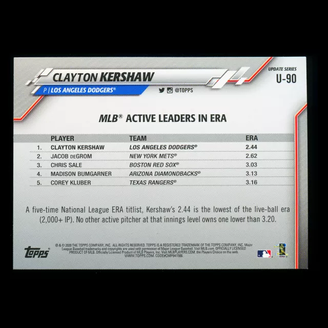 Clayton Kershaw 2020 Topps Active Leaders Dodgers